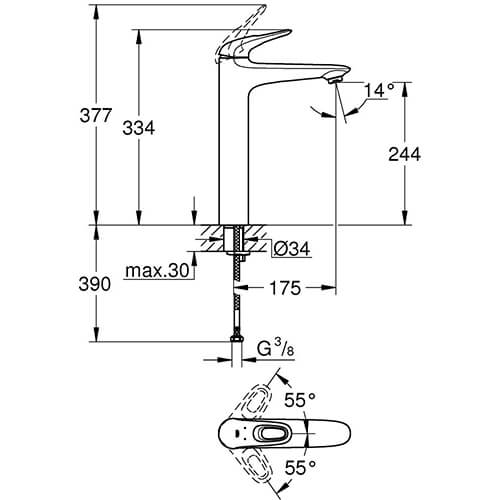 Подходит для раковины-чаши, Регулируемое ограничение температуры